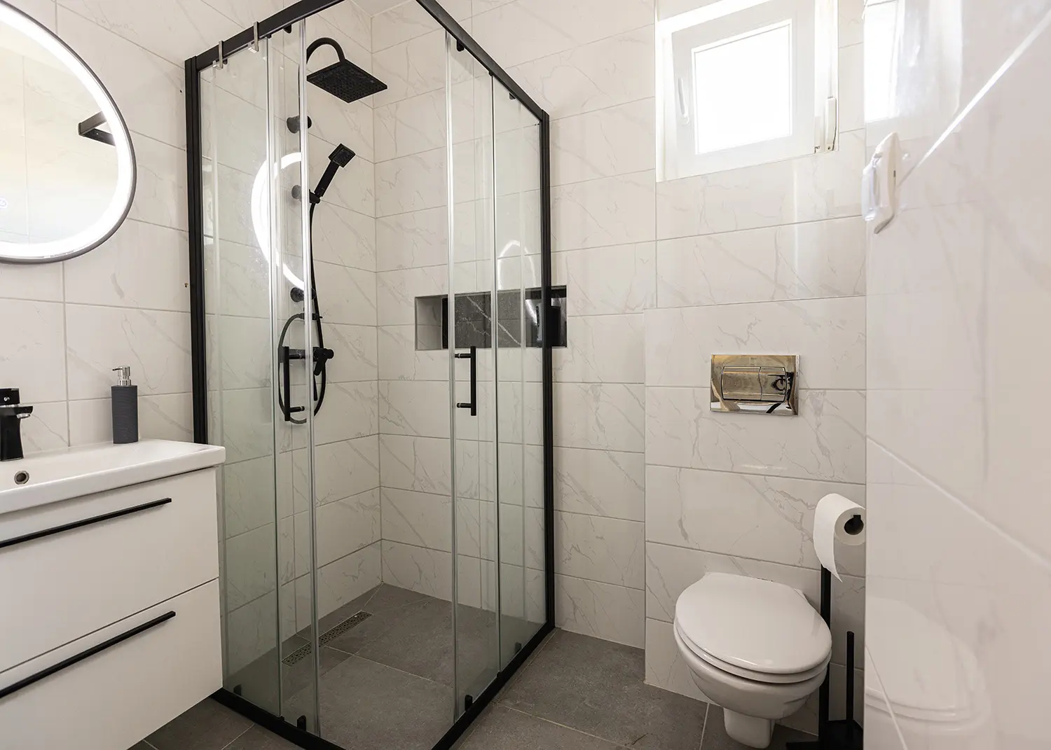 Łazienka z prysznicem i toaletą oraz druga osobna toaleta